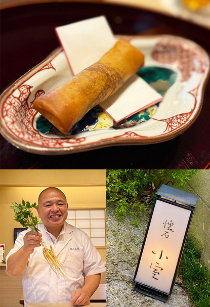 その中の一皿に天然のすっぽんと、フレッシュ高麗人参の春巻きがある。