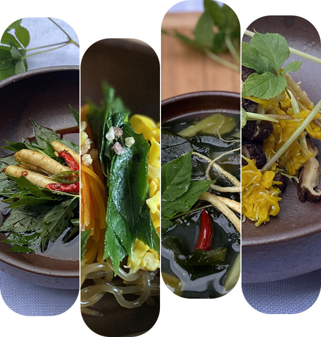 ここでは、フレッシュ⾼麗人参や⽣薬、スパイス、ハーブなどを中⼼とした料理に加え、発酵食や世界の⺠間療法を取り入れた身体と心が潤うレシピを、楽しみながら皆さんにご紹介したいと思います。